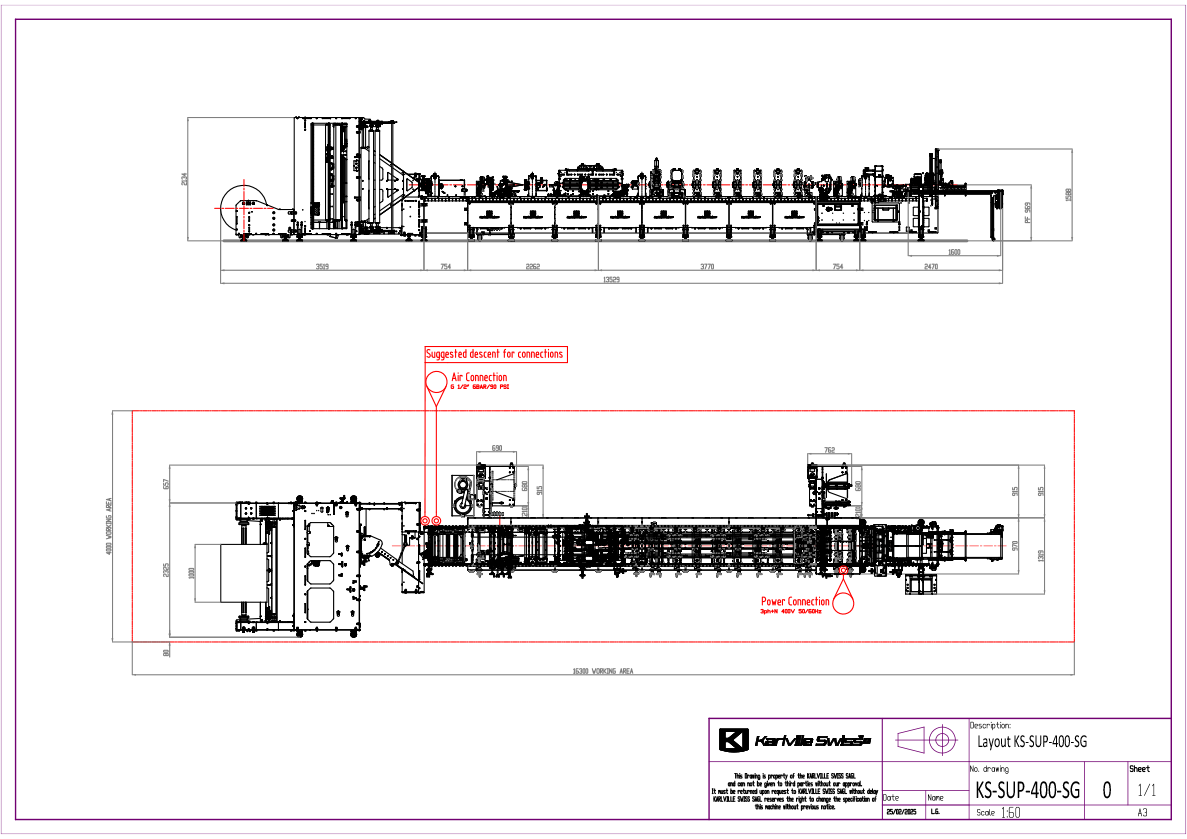 | Standard machine dimension (L x W x H) | 15200 x 2500 x 2500mm |